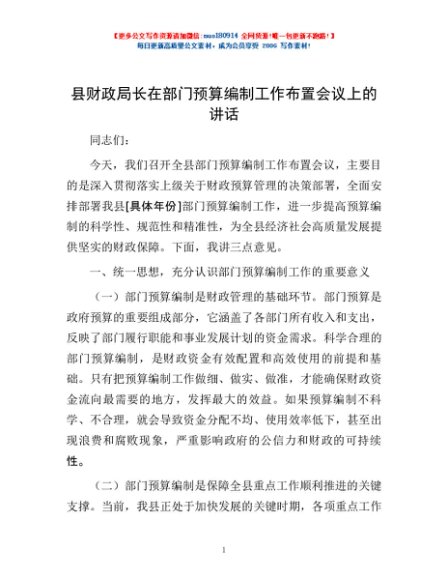 / 县财政局长在部门预算编制工作布置会议上的讲话