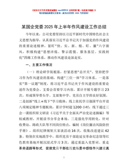 / 某国企党委2025年上半年作风建设工作总结