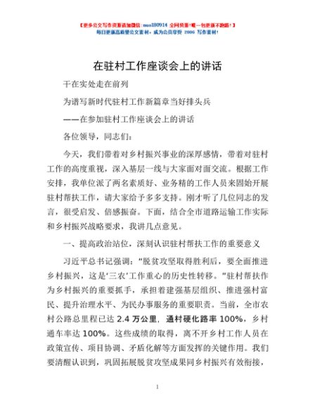 / 在驻村工作座谈会上的讲话
