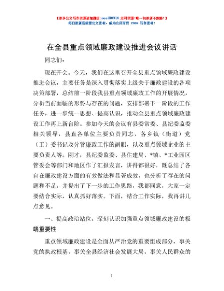 / 在全县重点领域廉政建设推进会议讲话
