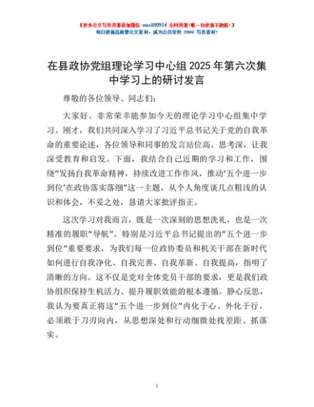 / 在县政协党组理论学习中心组2025年第六次集中学习上的研讨发言