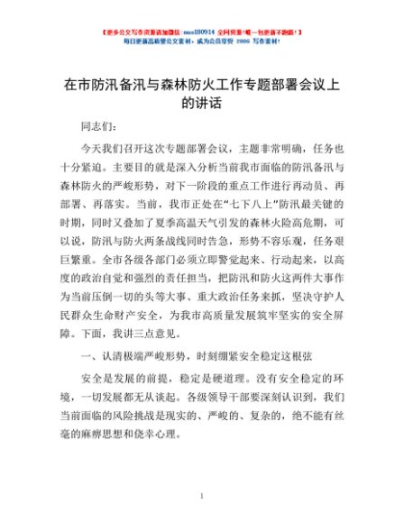 / 在市防汛备汛与森林防火工作专题部署会议上的讲话