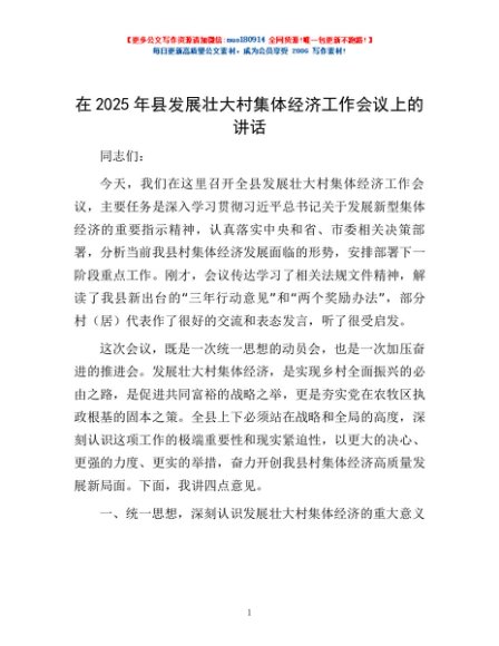 / 在2025年县发展壮大村集体经济工作会议上的讲话
