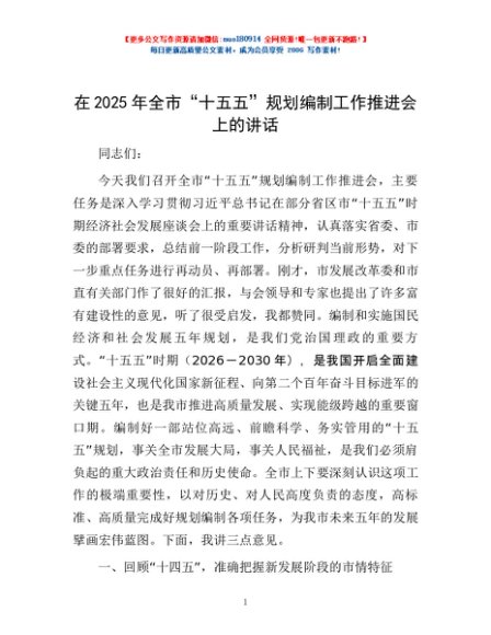 / 在2025年全市“十五五”规划编制工作推进会上的讲话