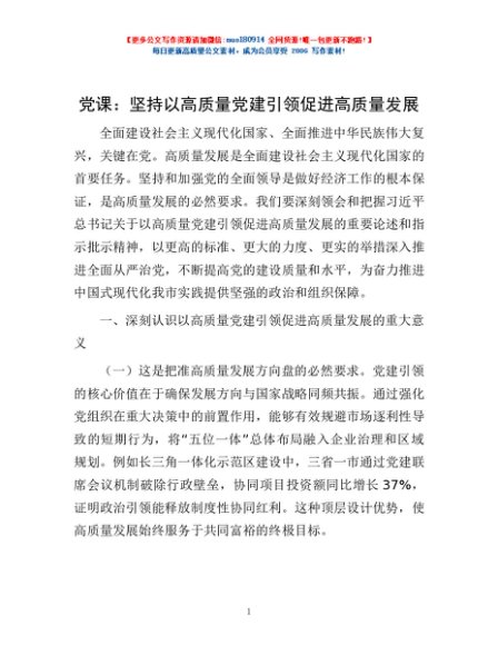 / 党课:坚持以高质量党建引领促进高质量发展