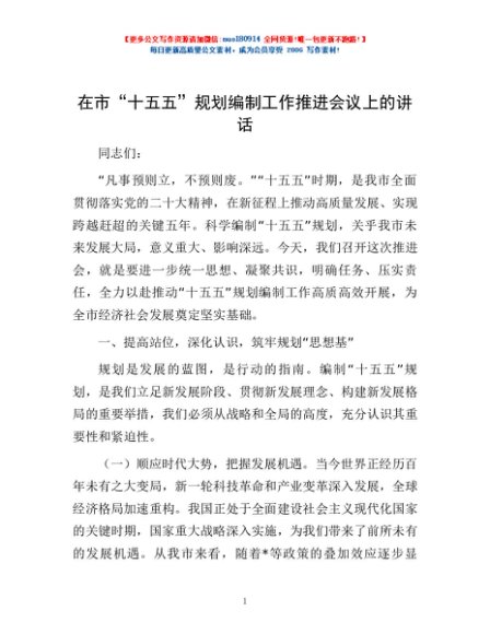 / 在市“十五五”规划编制工作推进会议上的讲话