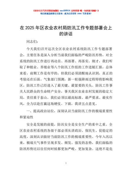 / 在2025年区农业农村局防汛工作专题部署会上的讲话