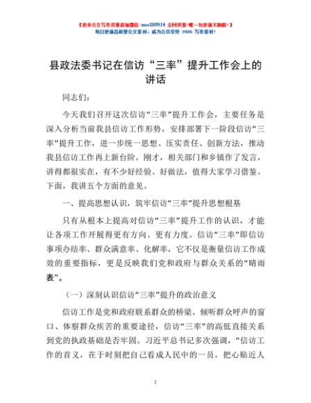 / 县政法委书记在信访“三率”提升工作会上的讲话