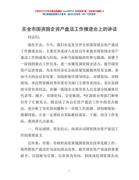 / 在全市国资国企资产盘活工作推进会上的讲话
