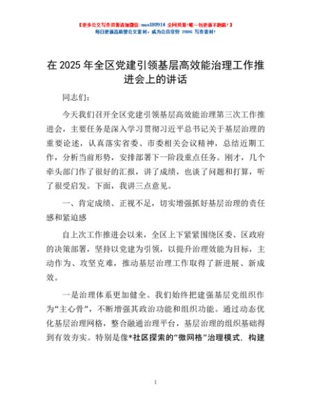 / 在2025年全区党建引领基层高效能治理工作推进会上的讲话