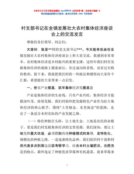 / 村支部书记在全镇发展壮大农村集体经济座谈会上的交流发言