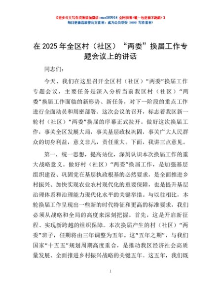 / 在2025年全区村(社区)“两委”换届工作专题会议上的讲话