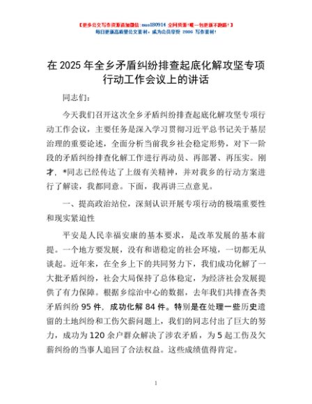 / 在2025年全乡矛盾纠纷排查起底化解攻坚专项行动工作会议上的讲话