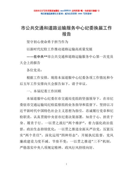 / 市公共交通和道路运输服务中心纪委换届工作报告