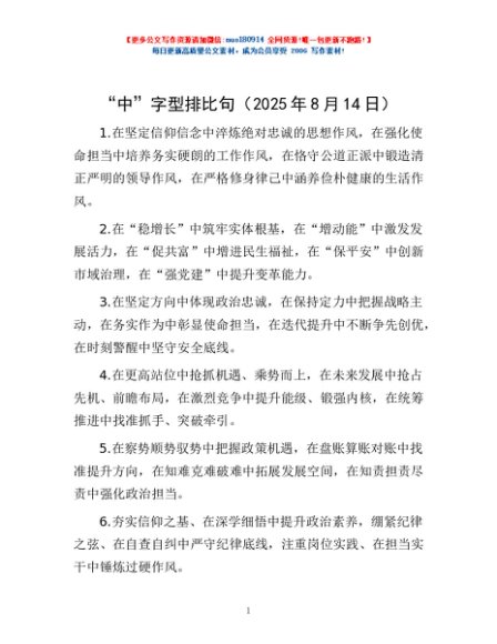 “中”字型排比句(2025年8月14日)