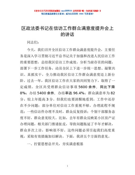 / 区政法委书记在信访工作群众满意度提升会上的讲话