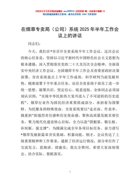 / 在烟草专卖局(公司)系统2025年半年工作会议上的讲话