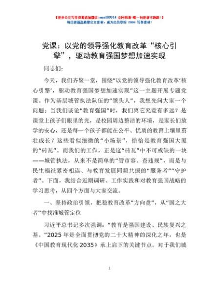 党课:以党的领导强化教育改革“核心引擎”,驱动教育强国梦想加速实现