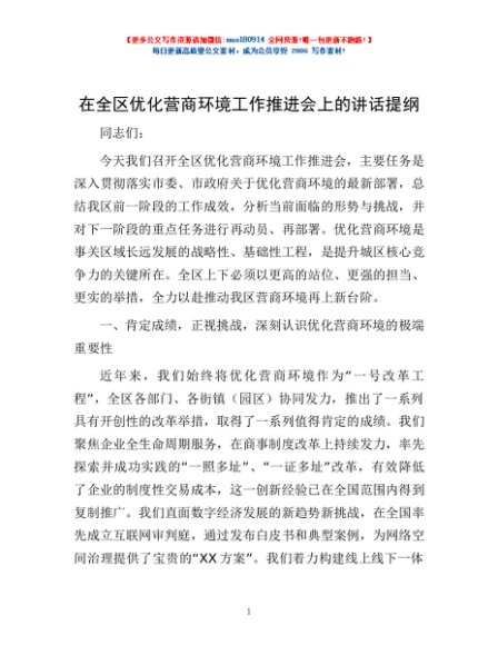 / 在全区优化营商环境工作推进会上的讲话提纲
