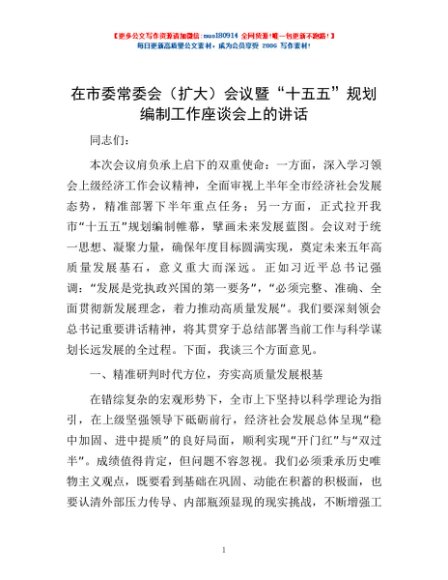 / 在市委常委会(扩大)会议暨“十五五”规划编制工作座谈会上的讲话
