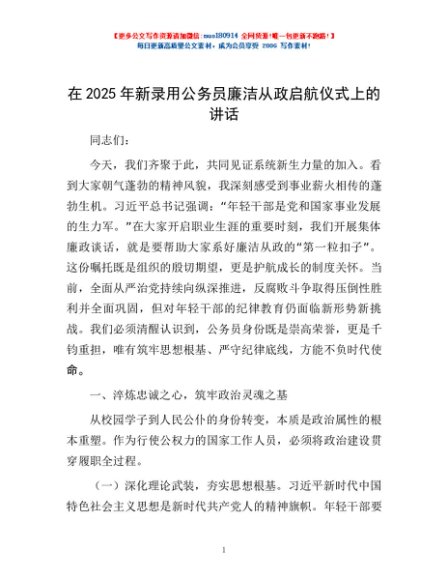 / 在2025年新录用公务员廉洁从政启航仪式上的讲话
