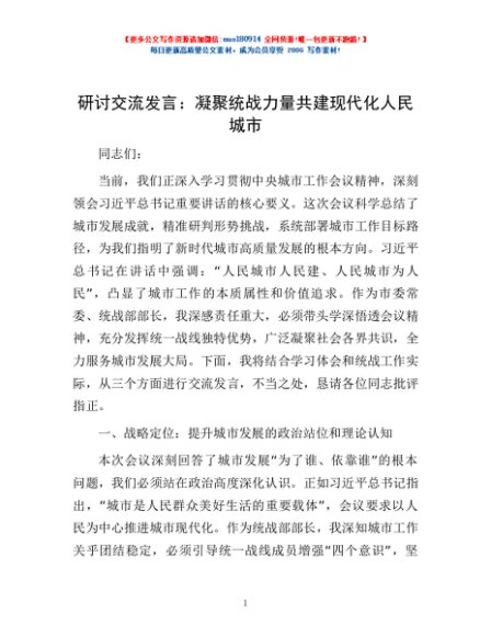 / 研讨交流发言:凝聚统战力量 共建现代化人民城市