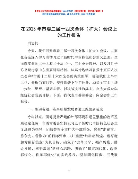 / 在2025年市委二届十四次全体(扩大)会议上的工作报告