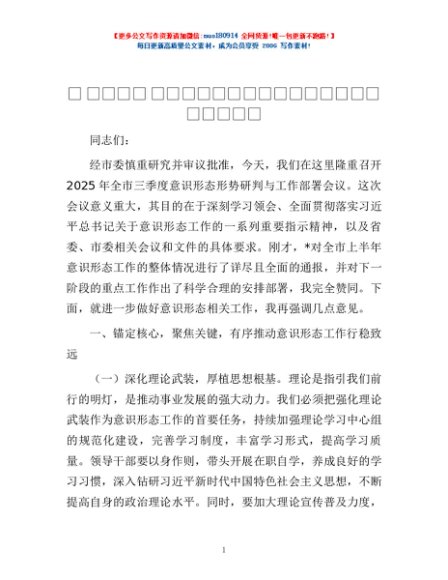 / 在2025年三季度意识形态研判分析工作会议上的讲话