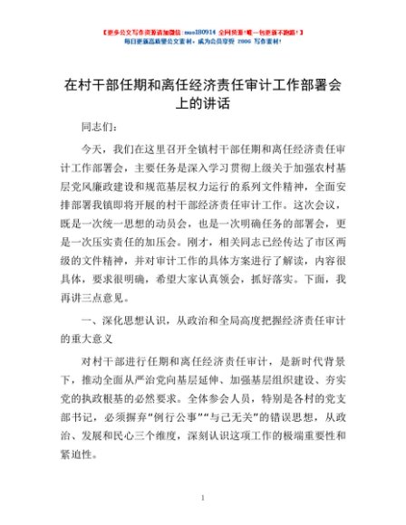 / 在村干部任期和离任经济责任审计工作部署会上的讲话