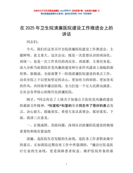 / 在2025年卫生院清廉医院建设工作推进会上的讲话