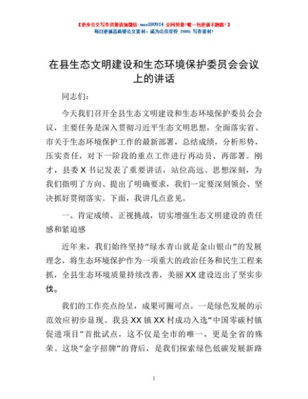/ 在县生态文明建设和生态环境保护委员会会议上的讲话