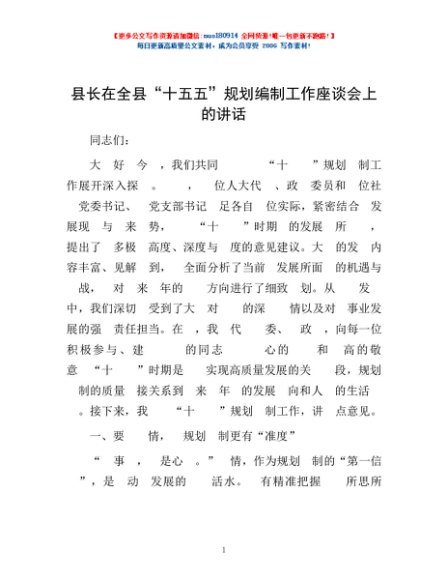 / 县长在全县“十五五”规划编制工作座谈会上的讲话