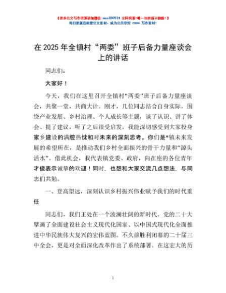 / 在2025年全镇村“两委”班子后备力量座谈会上的讲话