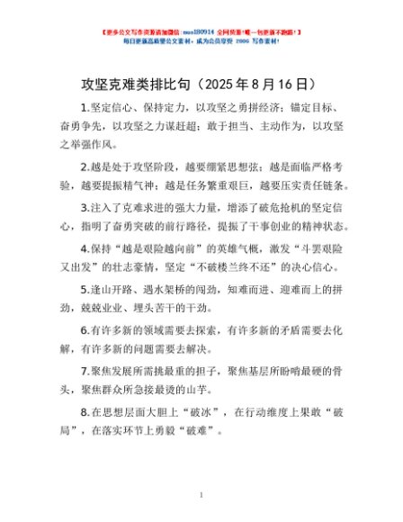 / 攻坚克难类排比句(2025年8月16日)