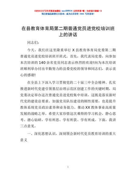 / 在县教育体育局第二期普通党员进党校培训班上的讲话