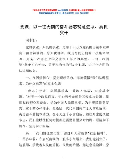 / 党课:以一往无前的奋斗姿态锐意进取、真抓实干