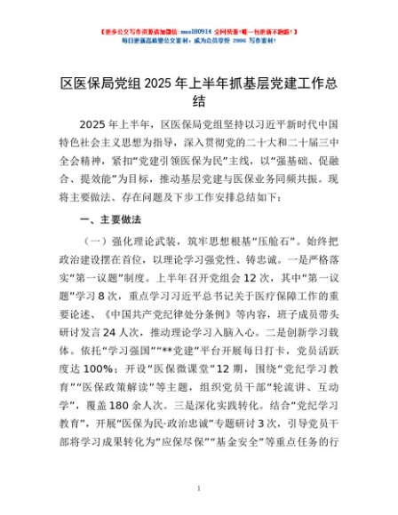 / 区医保局党组2025年上半年抓基层党建工作总结