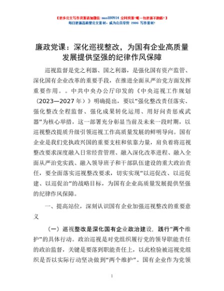 廉政党课:深化巡视整改,为国有企业高质量发展提供坚强的纪律作风保障
