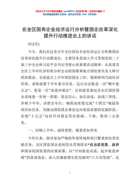 / 在全区国有企业经济运行分析暨国企改革深化提升行动推进会上的讲话