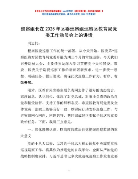 / 巡察组长在2025年区委巡察组巡察区教育局党委工作动员会上的讲话