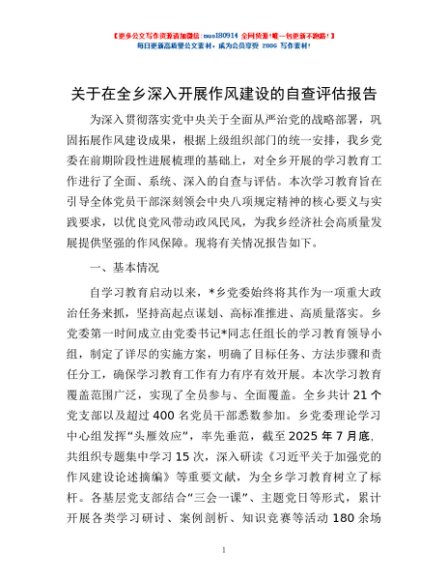/ 关于在全乡深入开展作风建设的自查评估报告