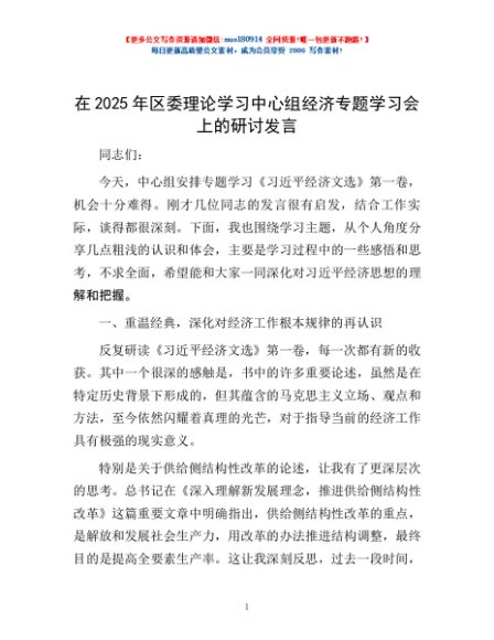 / 在2025年区委理论学习中心组经济专题学习会上的研讨发言