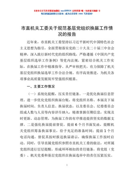/ 市直机关工委关于规范基层党组织换届工作情况的报告