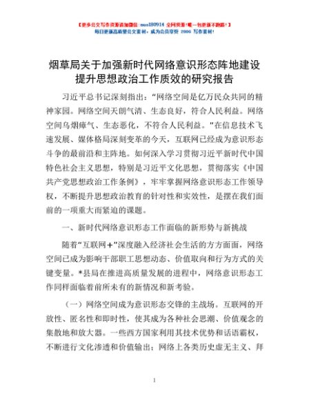 / 烟草局关于加强新时代网络意识形态阵地建设提升思想政治工作质效的研究报告