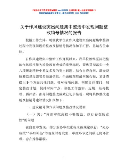 / 关于作风建设突出问题集中整治中发现问题整改销号情况的报告