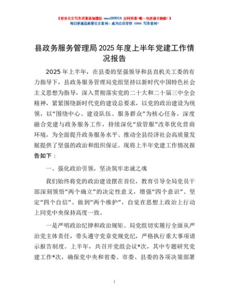 / 县政务服务管理局2025年度上半年党建工作情况报告