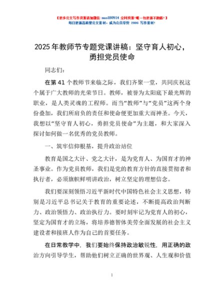 / 2025年教师节专题党课讲稿:坚守育人初心,勇担党员使命