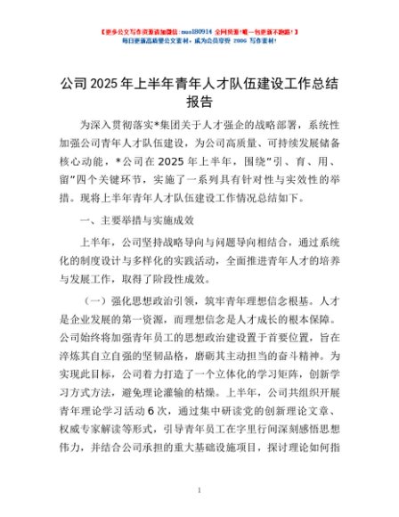 / 公司2025年上半年青年人才队伍建设工作总结报告