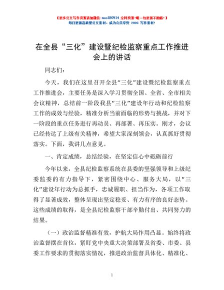 / 在全县“三化”建设暨纪检监察重点工作推进会上的讲话
