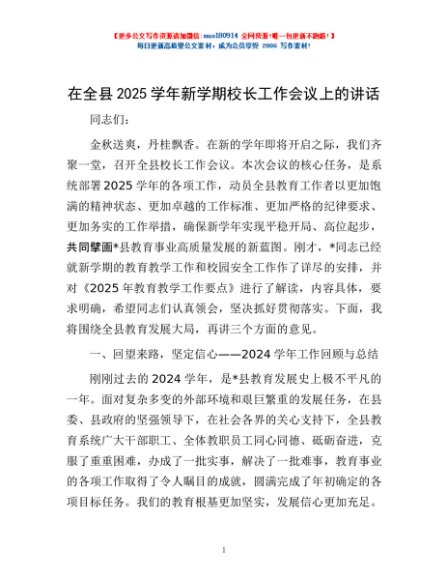/ 在全县2025学年新学期校长工作会议上的讲话